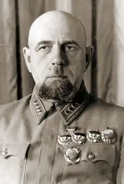 Pavel Efimovich Dybenko (Russian: Павел Ефимович Дыбенко; Ukrainian: Павло Юхимович Дибенко, romanizedPavlo Yukhymovych Dybenko; 16 February 1889 – 29 July 1938) was a Bolshevik revolutionary and a leading Soviet officer and military commander. He was arrested, tortured and executed during the Great Purge and subsequently rehabilitated during the Khrushchev Thaw.