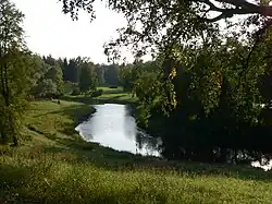 In 1777, the Empress Catherine II of Russia gave a parcel of a thousand hectares of forest along the winding Slavyanka River, four kilometers from her residence at Tsarskoye Selo, to her son and heir Paul I and his wife Maria Feodorovna, to celebrate the birth of their first son, the future Alexander I of Russia. At the time the land was given to Paul and Maria Feodorovna, there were two rustic log lodges called Krik and Krak. Paul and his wife spent the summers of 1777 to 1780 in Krik, while their new homes and the garden were being built.[1]