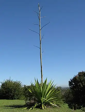 In botany, a peduncle is a stalk supporting an inflorescence or a solitary flower, or, after fecundation, an infructescence or a solitary fruit. The peduncle sometimes has bracts (a type of cataphyll) at nodes. The main axis of an inflorescence above the peduncle is the rachis, which hosts flowers (as opposed to directly on the peduncle).[1][2][3]