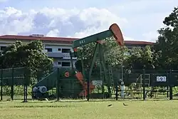 The Brunei Shell Petroleum (BSP) Company Limited is headquartered in Panaga and has various facilities related to the oil and gas industry in Seria.[39] The Seria Refinery is the only refinery in Brunei and is located in the Sungai Bera area,[40][12] together with the Seria Crude Oil Terminal (SCOT),[41] the New Gas Compression Plant (NGCP)[42] and the New Industrial Area (NIA).[43] The open-air oil water treatment facility at the Sungai Bera Holding Basin (SBHB) has since been discontinued due to environmental reasons.[44]