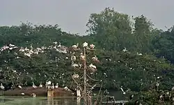 The spot-billed pelican has an estimated population between 13,000 and 18,000 and is considered to be near threatened in the IUCN Red List of Threatened Species. Numbers declined substantially during the 20th century, one crucial factor being the eradication of the important Sittaung valley breeding colony in Burma through deforestation and the loss of feeding sites.[89] The chief threats it faces are from habitat loss and human disturbance, but populations have mostly stabilised following increased protection in India and Cambodia.[49]
