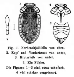 It was first described in 1897 by Gustav Breddin from a specimen found at Puerto Toro on Navarin Island in Tierra del Fuego. A Swedish expedition collected a second specimen in a forest on the Brunswick Peninsula near Punta Arenas, Chile, and Haglund unknowingly described it as a new genus and species (Nordenskjoldiella insignis), but it later proved to be a sub-brachypterous female corresponding with the macropterous male described by Breddin.[2]