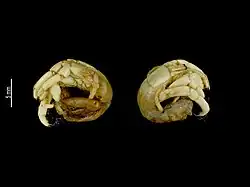 The Peltogastridae are a family of barnacles belonging to the parasitic and highly apomorphic infraclass Rhizocephala. The Peltogastridae are by far the largest family of Rhizocephala. They comprise 14 genera, 3 of which (Lernaeodiscus, Septodiscus, and Triangulus) were moved from the family Lernaeodiscidae.[1][2]