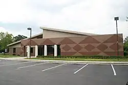In 1895 the community's population stood at approximately 150 residents.[11] It was incorporated that year as the town of Pembroke, named for railway worker Pembroke Jones. In 1909 the Croatan Normal School was moved there.[12] The earliest buildings in the community were made of wood, with awnings built to cover their entrances. The first brick building was erected in 1922. Around that time, Pates Supply Company, a general store, was established and became the largest business in Pembroke. A highway was established in 1923 along the east–west railroad, and the first street was paved in 1932.[13] Pembroke became a center for Lumbee commercial activity, though most kept to the rural areas of the county.[14] Due to their predominance in the community, the town lacked strict adherence to many Jim Crow norms common in the South in early 20th century.[15]