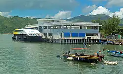 Peng Chau Ferry Pier or Peng Chau Pier is a ferry pier in Lo Peng Street, Peng Chau, New Territories, Hong Kong, next to Peng Chau Public Pier.[1] Two ferry routes are operated at the pier. One is the service between Peng Chau and Central, operated by Hong Kong & Kowloon Ferry.[2] The other is the "Inter-Island" service among Peng Chau, Lantau Island (Mui Wo, Chi Ma Wan) and Cheung Chau, operated by Sun Ferry.[3][4]