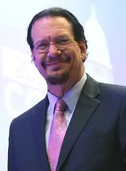 Penn Fraser Jillette (born March 5, 1955) is an American magician, actor, comedian, musician, inventor, television presenter, and author, best known for his work with fellow magician Teller as half of the team Penn & Teller. The duo has been featured in numerous stage and television shows, such as Penn & Teller: Fool Us and Penn & Teller: Bullshit!, and is as of 2025 headlining in Las Vegas at The Rio. Jillette serves as the act's orator and raconteur.