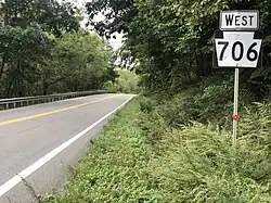 Pennsylvania Route 706 (PA 706) is a 36.1-mile-long (58.1 km) state highway in Pennsylvania. The western terminus is at U.S. Route 6 (US 6) in Wyalusing, and the eastern terminus is at US 11 in New Milford.