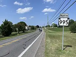 Pennsylvania Route 995 (PA 995) is a 19-mile-long (31 km) north–south state route in south central Pennsylvania. The southern terminus of the route is at PA 75 in Claylick. The northern terminus is at U.S. Route 30 (US 30) west of Chambersburg. The road carries the names Welsh Run Road, Lemar Road, and Warm Spring Road. PA 995 is a two-lane undivided road that runs southwest-northeast through farmland in southwestern Franklin County. The route crosses PA 416 in Welsh Run and forms a concurrency with PA 16 in Upton. PA 995 was designated in 1928 between Williamson and US 30 west of Chambersburg. The route was extended southwest to PA 75 in Claylick in 1937, with the road paved in the 1930s.