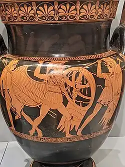 A black-figure vase from about 510–500 BC shows Achilles carrying Penthesilea from the battlefield.[23]