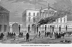 In Saint Petersburg, the State Bank took over the former building of the Russian Assignation Bank, commissioned by Catherine the Great in 1782 and completed in 1789 on a design by architect Giacomo Quarenghi.[13] At creation, the State Bank took over the former activity of the State Commercial Bank, including 7 local branches. It immediately opened its branches in Arkhangelsk, Kharkiv, Kyiv, Moscow, Odesa, Riga, Rostov-on-Don, and Yekaterinburg. In June 1864, 12 more branches of the State Bank were opened in Astrakhan, Chișinău, Ekaterinoslav, Kazan, Penza, Ryazan, Samara, Saratov, Tambov, Vladimir, Voronezh, and Yaroslavl. In the late 19th century, the State Bank erected branch buildings in cities across the Empire, often using a longitudinal building typology with a prominent avant-corps at the center; examples of the latter include the former branches in Moscow (built 1892-1893, arch. Konstantin Bykovsky; replaced the former branch in Lunins' House), Łódź (built 1905-1908, arch. Dawid Lande), Vilnius (built 1906-1909, arch. Mikhail Prozorov), and Warsaw (built 1907-1911, arch. Leon Benois[14]). By the beginning of 1917, the State Bank included 11 main branches, 133 permanent and 5 temporary offices, 42 agencies at granaries. In addition, the State Bank managed banking operations carried out in 793 local treasury offices.