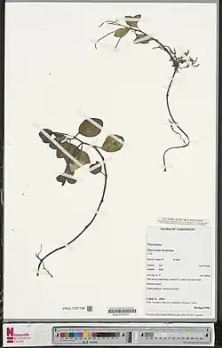 Peperomia thollonii is a species of flowering plant from the genus Peperomia.[1] It was first described by Casimir de Candolle and published in the book "Notulae Systematicae. Herbier du Museum de Paris 3: 38. 1914 ".[2] It primarily grows on wet tropical biomes.[1] Its etymology came from François-Romain Thollon, a botanist and plant collector who worked in Gabon and the Congo.[3]