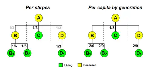 | Per stirpes | Per capita with representation | Per capita at each generation | |