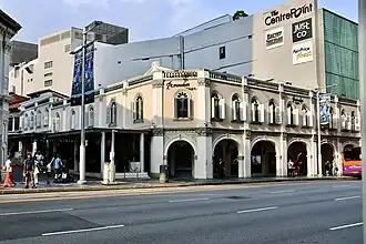 With its historic colonnaded covered walkways, Peranakan Place is currently an attraction on Orchard Road for tourists and locals alike.[6] It is closed off to traffic, and has commercial spaces as well as food and beverage outlets. Peranakan Place as it stands today is a commercial development that holds businesses ranging from F&B to retail. As the front faces the main shopping district of Orchard Road, the historic building receives a higher volume of traffic as compared to the quieter housing areas further in on Emerald Hill Road. The owners and tenants are thus required to abide by strict conservation standards set by the URA to ensure that the integrity of the building is preserved.[7] The display of a Chinese Baroque style of architecture, which uses a mélange of Chinese and European influences, can still be seen from the colourful yet structured façade.