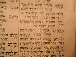 Perek Shira (Hebrew פרק שירה, lit. "Chapter of Song") is an ancient Jewish text. There are a number of versions extant, some associated with the Ashkenazic tradition, some with the Sephardic, and some with the Mizrahi Jews tradition.[1] It was first printed, with a commentary, in Moses ben Joseph de Trani's Bet Elohim (1576), but it is mentioned as early as the 10th century.[2] It contains 85 sections, in each of which elements of creation, beginning with the celestial and ending with dogs, use biblical and rabbinic verses in order to sing God's praises. Use of Perek Shira used to be prevalent in the daily liturgy and medieval philosopher Joseph Albo wrote that whoever recites Perek Shira is guaranteed a place in the World to Come.[3]