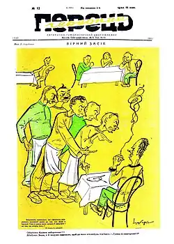 Perets' (Ukrainian: Перець, pronounced [ˈpɛretsʲ] ⓘ, lit. 'Pepper') is a Ukrainian satirical and humorous illustrated magazine. Together with the Moscow Krokodil (circulation 5 million copies in 1986), Perets' (circulation 3.3 million copies in 1986) was one of the two most popular comedy magazines in the USSR. Since 2021, only on-line publishing available at www.perets.org.ua