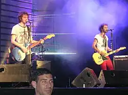 For their second album, Algo para cantar (2003) (Something to Sing), the band slimmed down to just the two founding members. While for live performances the line up was augmented with Rober Aracil on drums and Alfredo 'Pitu’ Gil on guitar. This enabled the group to consolidate their repertoire and live performance.[1] The group have stated on their webpage that they consider this album bolstered their aspirations and left them in an excellent position to follow their chosen path.[1] They consider that the songs had matured and that they maintain a fine balance between irreverent swagger, melody and eternal longing that appeals everyone.[1] The group has estimated that they carried out two hundred concerts to promote this album.[1] They supported Bon Jovi on their tour and they became friends with other groups such as Deluxe, Sidonie, Amaral and Los Piratas. The press started to consider the group to be "the new Tequila" or "the new Ronaldos".[1] They recorded the video for "Pienso en Aquella Tarde" (I'm thinking of that afternoon) in collaboration with David Summers Rodríguez and Dani Martín, vocalists with Hombres G and El Canto del Loco respectively.