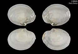- Periploma margaritaceum (Lamarck, 1801) – unequal spoonclam