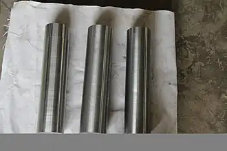Permendur is a cobalt-iron soft ferromagnetic alloy with equal parts of cobalt and iron which is notable for its high magnetic saturation level.[1][2] Its saturation flux density of around 2.4 tesla is the highest of any commercially available metal. Coupled with its low coercivity and core losses, its high saturation and permeability makes Permendur useful as magnetic cores in transformers, electric generators and other electrical equipment. The advantage of high saturation in a magnetic core is that it can function at higher magnetic field strengths, so the core can be smaller and lighter for a given magnetic flux and power level. Permendur is used for magnetic cores and pole pieces in lightweight transformers and electric motors used in aircraft. The alloy was invented in 1929 by Gustav Elmen at Bell Telephone Laboratories.[3] Various formulations are sold under different trade names.