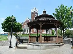 The courthouse is located on the main square in Perryville, and is complete with a chiming clock tower. On the grounds are a war memorial, civil war memorial, a "Camino Real" Marker and a number of other markers. Around the courthouse is the courthouse lawn which features a brick paved plaza, landscaped seating areas, park benches, a sundial, a directional marker and a gazebo.[9]