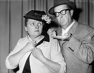 Pert L. Kelton (October 14, 1907[1] – October 30, 1968) was an American stage, movie, radio, and television actress.[2] She was the original Alice Kramden in The Honeymooners with Jackie Gleason. During the 1930s, she was a prominent comedic supporting and leading actress in Hollywood films such as Gregory La Cava's Bed of Roses with Constance Bennett and Raoul Walsh's The Bowery with Wallace Beery and George Raft (both released in 1933). She performed in a dozen Broadway productions between 1925 and 1968. She is probably best-known for creating the role of Mrs. Paroo in the original 1957 Broadway production of the musical The Music Man, which she reprised in the 1962 movie adaptation. In the early 1950s, her career was interrupted as a result of Hollywood blacklisting,[3][4] leading to her departure from The Honeymooners.