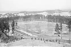 Pesäpallo, a combination of traditional ball-batting team games and North American baseball, was invented by Lauri "Tahko" Pihkala in the 1920s.[3][4] It has changed with the times and grown in popularity. On 14 November 1920, it was played the first time at Kaisaniemi Park in Helsinki.[5] Pesäpallo was a demonstration sport at the 1952 Summer Olympics, held in Helsinki, Finland.[6]