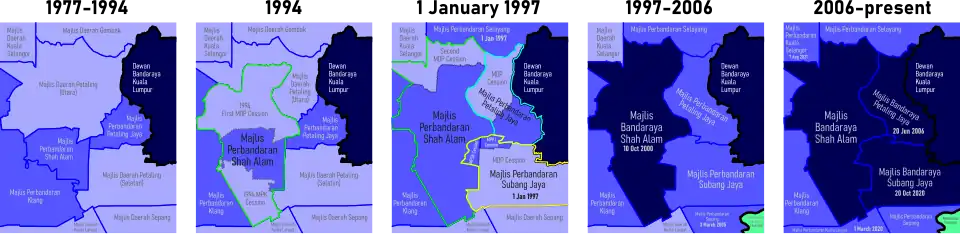 Following a boundary realignment exercise in January 1997, parts of Petaling Jaya including Subang Jaya, USJ, Putra Heights, and Bandar Sunway were ceded to the newly formed Subang Jaya Municipal Council or MPSJ at the time. In exchange, the MPPJ annexed Bandar Utama, Sungai Buloh, Bukit Lanjan, and Kota Damansara from the Petaling District Council (Majlis Daerah Petaling, MDP), which disestablished itself after the cession.