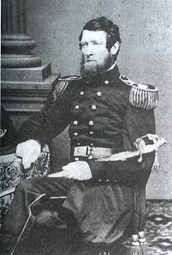 His first active military service was In the Buckshot War in December 1838.[3] The Grays were called to Harrisburg by Governor Joseph Ritner to assist in preserving the peace when the Pennsylvania legislature was under threat by a mob.[3] The incident was later referred to as the "Buckshot War" because of an order specifying that each man was to be provided with "thirteen rounds of buckshot and seven rounds of ball cartridge."[3] The company returned after nine days' service.[3]