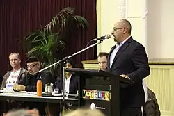 Peter Khalil addressing a candidates forum in 2016