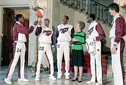 One of the youngest players ever inducted into the Naismith Memorial Basketball Hall of Fame, Maravich was considered to be one of the greatest creative offensive talents ever and one of the best ball handlers of all time.[3][4] He died suddenly at age 40 during a pick-up game in 1988 because of an undetected heart defect.[5] Maravich was named to the NBA's 50th Anniversary team in 1996 and 75th Anniversary team in 2021.