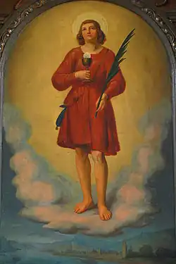 In 1851, thanks to the religious artist Ernst Deger, he was able to get work assisting Alfred Rethel, a fellow student from the Akademie, with a project at the Aachen Town Hall, which had been started in 1847 but was delayed due to Rethel's poor health. Back in Koblenz, in 1854, he married Amalia Schneider, daughter of the court carpenter, Jakob Franz Schneider.[1] In 1857, with his wife and infant daughter, he accepted another job offer from Deger and moved to Kapellen (now part of Koblenz), where their son, Franz, was born. This project involved wall paintings commissioned by King Frederick William IV of Prussia for Stolzenfels Castle.