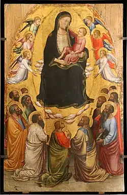 Sandro Botticelli (Madonna with Child), Vittore Carpaccio (Sacred conversation), Lorenzo Monaco, Carlo Crivelli, Vittorio Crivelli, Sano di Pietro, Matteo di Giovanni, Benvenuto di Giovanni, Taddeo di Bartolo, Andrea di Bartolo, Benozzo Gozzoli, Lorenzo di Credi (workshop), Antonio Vivarini, Bartolomeo Vivarini, Liberale da Verona, Pesellino, Jacopo del Sellaio, Neri di Bicci, Cima da Conegliano, Vecchietta, Giovanni di Paolo, Jacopo di Paolo, Cosimo Rosselli, Ludovico Mazzolino, Ridolfo del Ghirlandaio, Giovanni da Udine, Biagio di Antonio Tucci, Benvenuto di Giovanni, Bartolomeo Veneto, Ambrogio Bergognone, Francesco Botticini, Antoniazzo Romano, Bonifacio Bembo, Marco Palmezzano, Bernardino Fungai, Master of Tavarnelle, Louis Bréa or from the Avignon school Josse Lieferinxe and Enguerrand Quarton.