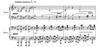Beginning of the work with an ostinato of the piano and a counterpoint of the harmonium