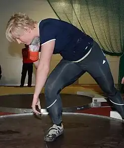 She began the following season with a win at the 2007 European Cup Winter Throwing. She achieved her personal best throw of 20.04 m in May that year and managed fifth place at the 2007 World Championships in Athletics held in Osaka. She narrowly missed out on a medal at the 2007 IAAF World Athletics Final, ending the competition in fourth place. She missed major competitions in 2008, but returned to win her first major title at the 2009 European Athletics Indoor Championships by throwing an indoor best of 19.66 m.[2] She was the runner-up at the 2010 European Team Championships and finished behind Nadine Kleinert at the 2010 German Athletics Championships. Lammert placed sixth at the 2010 European Athletics Championships in Barcelona.