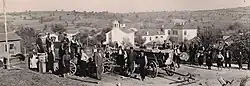 Due to the rise of anti-Islamism[26] and nationalism in post-Ottoman Bulgaria, the abandoned and decaying village mosque was removed in 1902. Its materials were recycled and used in the construction of the present-day Eastern Orthodox church of the Dormition of the Theotokos. It was built by Trǎn constructors in 1902 not far from the location of the former mosque[3] with the enthusiastic support of the locals. They donated money, icons and church appliances to it. The population of Petrevene was not affected harshly by the two World Wars. Only a few people fought and less than fifty died in the wars.[27] During the Balkan Wars (1912–1913) Petrevene soldiers took part in the battle for the town of Chataldzha in East Trace, while during the First World War (1915–1918) they fought on the Macedonian Front. A humble monument devoted to the fallen villagers during the wars was erected in 2003 in the village center. During the Second Balkan War (1913) North Bulgaria was occupied briefly by the invading Romanian troops. In Petrevene they used to frequently search houses and backyards for hidden items.
