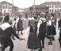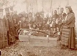 A mass exodus to Turkey by the Pomaks in the region started after the Unification of Bulgaria in 1885. They moved mostly to the regions of the cities Çorlu in East Thrace and Hasanbey in Balikesir in Anatolia.[24] Their property and estates were thereby bought, transferred to, or abandoned and acquired by the remaining population.[3] A Pomak school opened briefly in the village of Blasnichevo to encourage Pomaks to remain in their locations. In 1893 only 22 Pomaks remained in Petrevene. The entire Pomak population left the village by 1898.[25][26] Several Italian quarrymen settled in Petrevene at the beginning of the 20th century. They created, in particular, many skillful gravestones, still standing in the village cemetery.