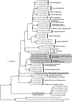- ^ a b Lavoué, S.; Sullivan, J.P. (2014). "Petrocephalus boboto and Petrocephalus arnegardi, two new species of African electric fish (Osteoglossomorpha, Mormyridae) from the Congo River basin". ZooKeys (400): 43–65. Bibcode:2014ZooK..400...43L. doi:10.3897/zookeys.400.6743. PMC 4023242. PMID 24843255.