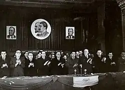 Despite having briefly retired from public life in 1928 after holding a series of political posts, Groza reemerged on the political scene in 1933, founding a peasant-based political organization, the Ploughmen's Front.[3] The Front was funded by the Red aid.[6]
