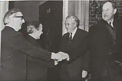 Politicians from the entire political spectrum have labelled De Jong as one of the better prime ministers of the Netherlands. In an episode of the Dutch television programme Netwerk aired in 2005, he is even labelled as perhaps the best postwar Prime Minister of the Netherlands. This view has been shared by numerous high-profile current and former Dutch politicians, including former prime minister Dries van Agt[27] and former deputy prime minister Hans Wiegel, who praised De Jong being perhaps the best prime minister after World War II.[28] Former Member of the Senate and Righteous Among the Nations Johan van Hulst said that of all the prime ministers he worked with in twenty-five years, De Jong was the best.[29] On 23 March 2011, the history channel Hollanddoc devoted an episode about his life with the quote "Attention for the least-known prime minister after World War II, but perhaps the most successful: Piet de Jong"[30] In November 2011, the second edition of his in 2001 released biography Van buitengaats naar Binnenhof. P.J.S. de Jong (From offshore to Binnenhof. P.J.S. de Jong) became well received and further enhanced his reputation: "He showed himself a team leader with perspective and humor. The ideal manager in a time of crisis of authority, polarization and social unrest."[31]
