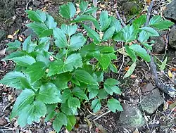 This is a perennial herb which grows up to a meter tall, or possibly more. The caudex has a ring of fleshy roots. The leaves have highly dissected blades borne on long, stout petioles. The inflorescence is an umbel of many tiny white flowers. The plant has a scent similar to parsley.[1]
