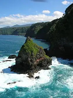 This plant, the only Peucedanum found in the Hawaiian Islands, grows in coastal canyons and on cliffs overlooking the ocean. There are two small populations in the Waianae Range of Oahu, three on Molokai, ten on Kauai, and one on Keopuka Rock, an islet close to the coast of Maui.[2]