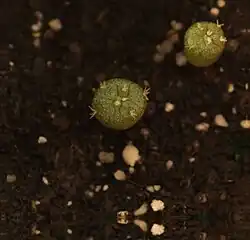 Peyote is extremely slow growing. Cultivated specimens grow considerably faster, sometimes taking less than three years to go from seedling to mature flowering adult. More rapid growth can be achieved by grafting peyote onto mature San Pedro root stock. The top of the above-ground part of the cactus, the crown, consists of disc-shaped buttons. These are cut above the roots and sometimes dried. When done properly, the top of the root forms a callus and the root does not rot. When poor harvesting techniques are used, however, the entire plant dies.[16] Currently in South Texas, peyote grows naturally but has been over-harvested, to the point that the state has listed it as an endangered species.[17] Cultivation is an important conservation tool for this particular species.[18] Promoting San Pedro as a Peyote substitute may act as an intervention to reduce Peyote consumption.[19]