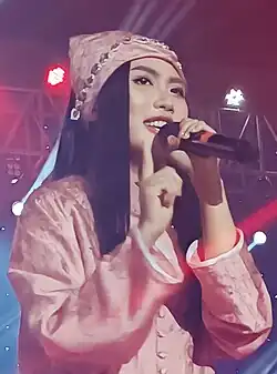 At the 2024 Green Wave Awards, she performed two songs "Diều ngược gió" and "Wrapped miền Tây".[38] "Diều ngược gió" is the theme song of 2024 Green Wave Awards,[39] and "Wrapped miền Tây" is a mashup of Western region of Vietnam songs and social media trends in 2024.[38]