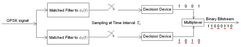 QPSK systems can be implemented in a number of ways. An illustration of the major components of the transmitter and receiver structure are shown below.