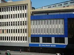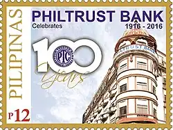 Philippine Trust Company (PSE: PTC, Also known in Hokkien Chinese: 菲律濱信託銀行; Pe̍h-ōe-jī: Hui-li̍p-pin Sìn-thok Gûn-hâng; & Mandarin simplified Chinese: 菲律滨信托银行; traditional Chinese: 菲律濱信託銀行; pinyin: Fēilǜbīn Xìntuō Yínháng),[1] commonly known as Philtrust Bank, is one of the oldest private universal banks in the Philippines. Founded on October 16, 1916, its history parallels the growth of the Philippine banking system.[2] It is the third bank to be established in the Philippines, after Bank of the Philippine Islands and Philippine National Bank. The bank is one of the businesses that was owned by Chinese-Filipino businessman, Emilio Yap.[3]