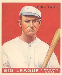 Philip Julius Todt (August 9, 1901 – November 15, 1973), nicknamed "Hook", was a first baseman in Major League Baseball who played between the 1924 and 1931 seasons. Listed at 6 ft 0 in (1.83 m), 175 lb., Todt batted and threw left-handed. He was born in Saint Louis, Missouri.