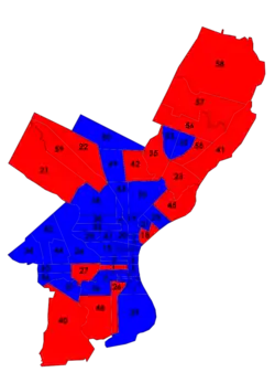 In 1957 and 1959, Philadelphia Democrats had achieved citywide victories over the Republicans, capping a string of electoral wins that had begun in 1951.[1] Their 1959 victory, especially, indicated a complete domination of the city's politics as Mayor Richardson Dilworth carried 58 of 59 wards in his reelection bid; he and other Democrats running for citywide seats took nearly two-thirds of the vote.[1] It was followed up by a resounding success in the presidential election of 1960, when Democratic Senator John F. Kennedy carried the state thanks to a 330,000-vote majority in Philadelphia.[2] The coalition of independent reformers and organization Democrats looked to further increase their success in 1961, with Democratic City Committee chairman William J. Green, Jr., predicting a margin of 100,000 votes in the off-year election.[2]