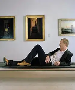 Philipp Demandt photographed by Oliver Mark at the Pomeranian State Museum in front of Caspar David Friedrich's Woman Ascending towards the Light, Greifswald 2008