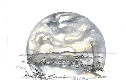 The drawing, and the process of creating it, was described as "an unfolding linear landscape consisting of myriad geometric shapes and expressive washes in subtly monochromatic tones. ... The drawing was allowed to unfold intuitively, starting with a clearly imagined horizontal structure inspired by the vastness of the Newfoundland landscape. The artist deliberately had no end vision for the final island, wanting instead to see how it would grow and attempting to keep herself (in her own words) 'in a state of continuous imaginative possibilities.'"[9]