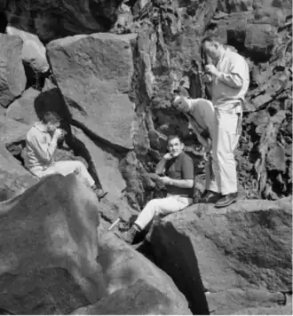 NASA and the USGS used the site to geologically train the Apollo Astronauts in June 1964. In the words of Phinney, the site was "...probably more like lunar geology." Training included recognizing "both igneous and sedimentary rocks, orientation with geological maps, measuring and describing stratigraphic sections, strike and dip measurements, recording of field notes ... and geophysical traverses that included taking measurements with magnetometers, gravimeters and seismometers in an attempt to determine subsurface structure." Astronauts who would use this training on the Moon included Apollo 11's Neil Armstrong and Buzz Aldrin, Apollo 12's Pete Conrad and Alan Bean, Apollo 15's David Scott, and Apollo 17's Gene Cernan. Notable geologist instructors included G.D. Robinson.[37]
