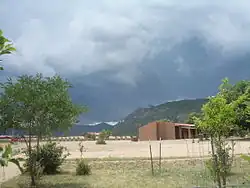 On June 25, 1960, a Fujita scale F0 tornado swept through Philmont's base camp area, downing about 300 tents located on a flat near Ranch Headquarters and depositing camping gear over Tooth of Time Ridge. Four 1960 National Jamboree troops from New Mexico—Troops 78, 79, 80, and 82—had gathered at Philmont for a shakedown camp. Three other New Mexico troops had gone to Camp Zia for their shakedown. The troops had 32 boys, two assistant scoutmasters, and one scoutmaster. Troops were camping in wall tents, which they had decorated before going to the Jamboree. Each wall tent had a wooden frame with a thick wooden roof pole for support. The boys were learning how to cook over charcoal fires, and the fires had just started for the evening meal. The twister arrived without warning. As the wind suddenly increased, boys ran to secure the tents, but to no avail. The winds swept up tents, fires, and men and boys, rolling nearby automobiles and leveling the camp. Injuries included broken bones, blunt force injuries from flying debris—including shattered roof poles—and burns from charcoal fires and equipment ignited by the fires. The twister also leveled a nearly completed cinder block chapel. After the passage of the storm, gear, and equipment could be seen in the funnel cloud as it left the area. Camping equipment was found as far as 14 miles (23 km) from the campsite and recovered by ranch hands. Boys were housed for the night in other facilities, and the next day, boys passed among piles of recovered equipment to reclaim what they could.[17] Although there were no fatalities, 33 Scouts and a Scout leader received injuries.[18]
